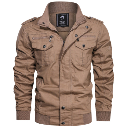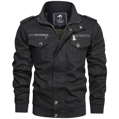 Men's Outdoor Warm Breathable Multi-pocket Cotton Washed Cargo Jacket